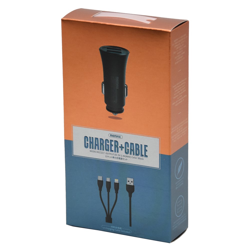 12V car charger, REMAX, RCC 217, 2.4A, three plugs and two outputs, Fast Charger