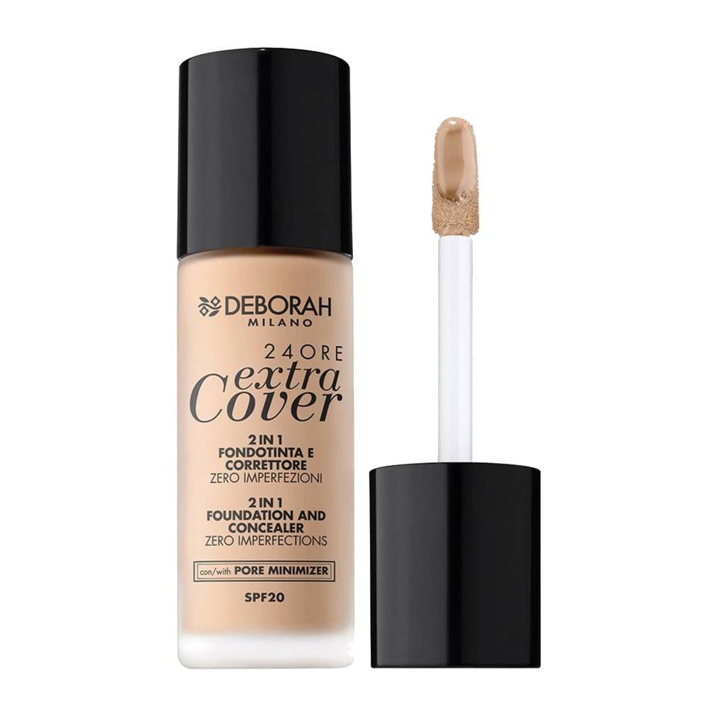 Liquid makeup foundation and makeup concealer, 00 Ivory, in beige color, equipped with a round-tipped applicator, with a dermatologically tested formula, enriched with silicone elastomers, treated pigments and wax, with sun protection factor of 20 SPF, with moisturizing, soothing and protective effect for the skin. It can be applied on the skin to create an even, uniform color to the complexion, to cover skin flaws or dark circles around the eyes, to change the natural skin tone, to reduce open pores, to absorb excess sebum from the skin or to apply on the face as a base layer for more complex cosmetics, and it has a long-lasting effect of up to 24 hours. This product is suitable for use on all skin types.