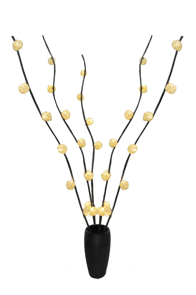 30L WHITE LED (6L*5) WILLOW LIGHTS WITH RATTAN BALLS; WHITE COLOR; 5 BANCHES; BRANCH DISTANCE: 30 CM; HIGH: 120 CM; WITH IP20 GS TRANSFORMER