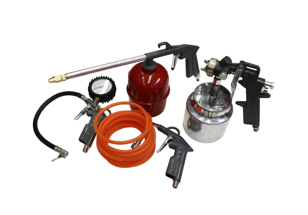 Set for painting with air, 5 piece, constitutes: A pistol for painting, for cleaning bottles, pistol for tire bulge, pressure tube 5m, simple air pistol Can be widely used in your work premises or houses for different cleaning or repairs