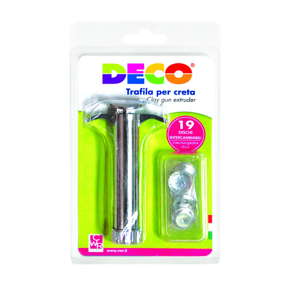 Pre-crete metal syringe equipped with 19 nozzles in different shapes for making decorations on clay, ceramic and porcelain objects. It can also be used with synthetic modeling clay. Easy to use and clean, excellent value for money. The measurements of the syringe are 10 cm closed and approximately 16/17 cm when the plunger is pulled backwards. the diameter is approximately 1.5 cm.