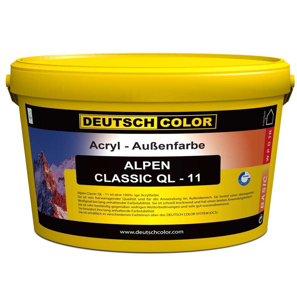 Alpen Classic QL 11 is an acrylic paint with excellent qualities, for exterior use. It possesses very good workability and leveling properties, strong adhesion and fast drying.After its application, the result is a matt finish with excellent resistance to various water and atmospheric agents.