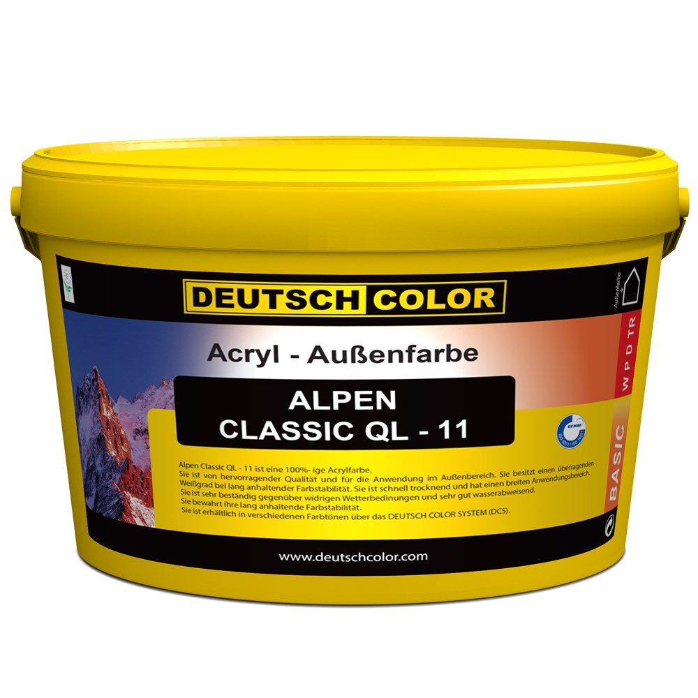 Alpen Classic QL 11 is an acrylic paint with excellent qualities, for exterior use. It possesses very good workability and leveling properties, strong adhesion and fast drying.After its application, the result is a matt finish with excellent resistance to various water and atmospheric agents.