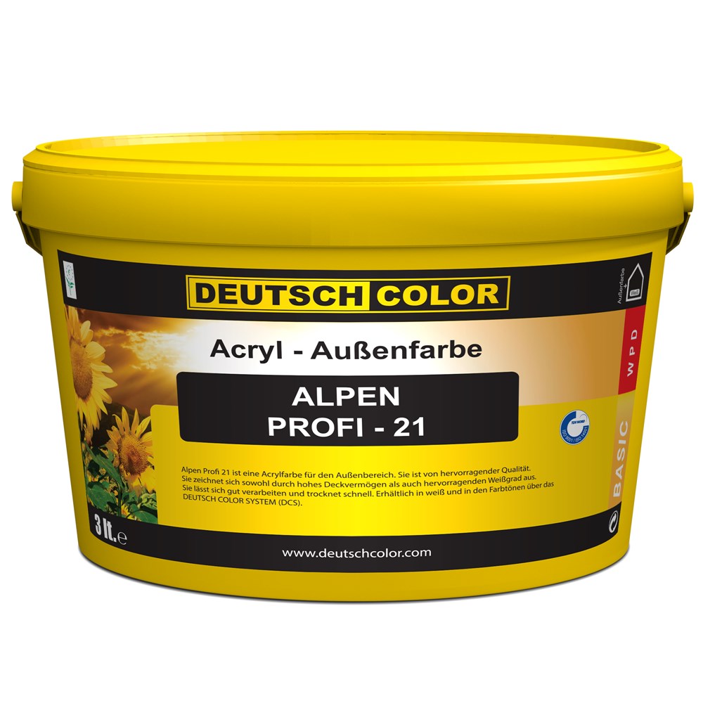 Alpen Profi 21 is an acrylic- resin -based paint for exterior use. It is characterized by excellent coverage strength and whiteness. It is an economic product for professional use which protects exterior surfaces, depending on weather conditions.