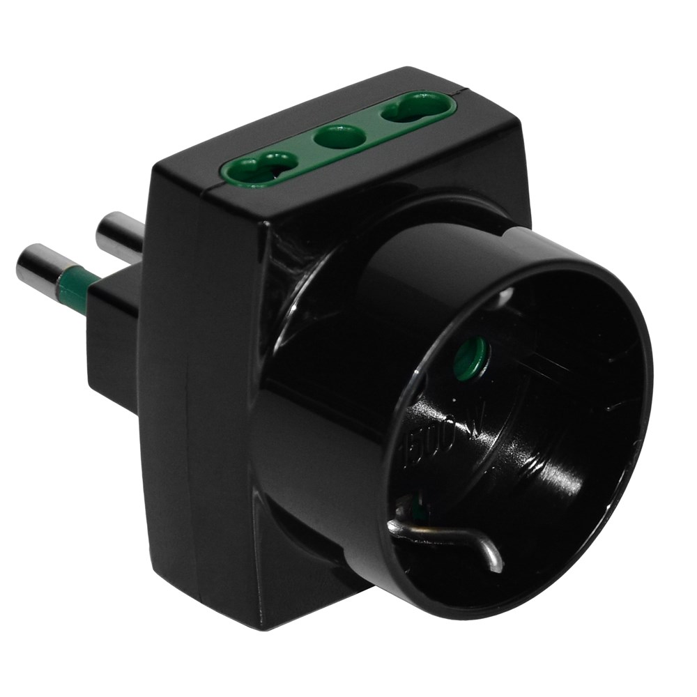 To adapt plug with sockets adapter are a very practical solution, plastic compounds and copper material.