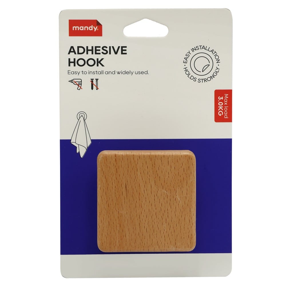 Adesive hook, multifunksional, wood, natural hood, 7.2x7.2x4.5 cm