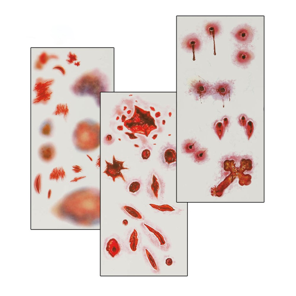 Tattoo sticker made of plastic material. The set contains some tattoos to stick to the face or body to create false scars and make your gorgeous outfit scary.