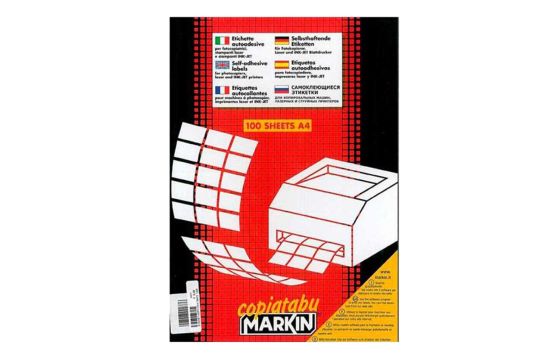 Adhesive label 70x36 mm, no margin. Suitable for photocopiers, laser printers, etc. A4 format, 100 sheets per pack, 24 labels per sheet with permanent adhesive.