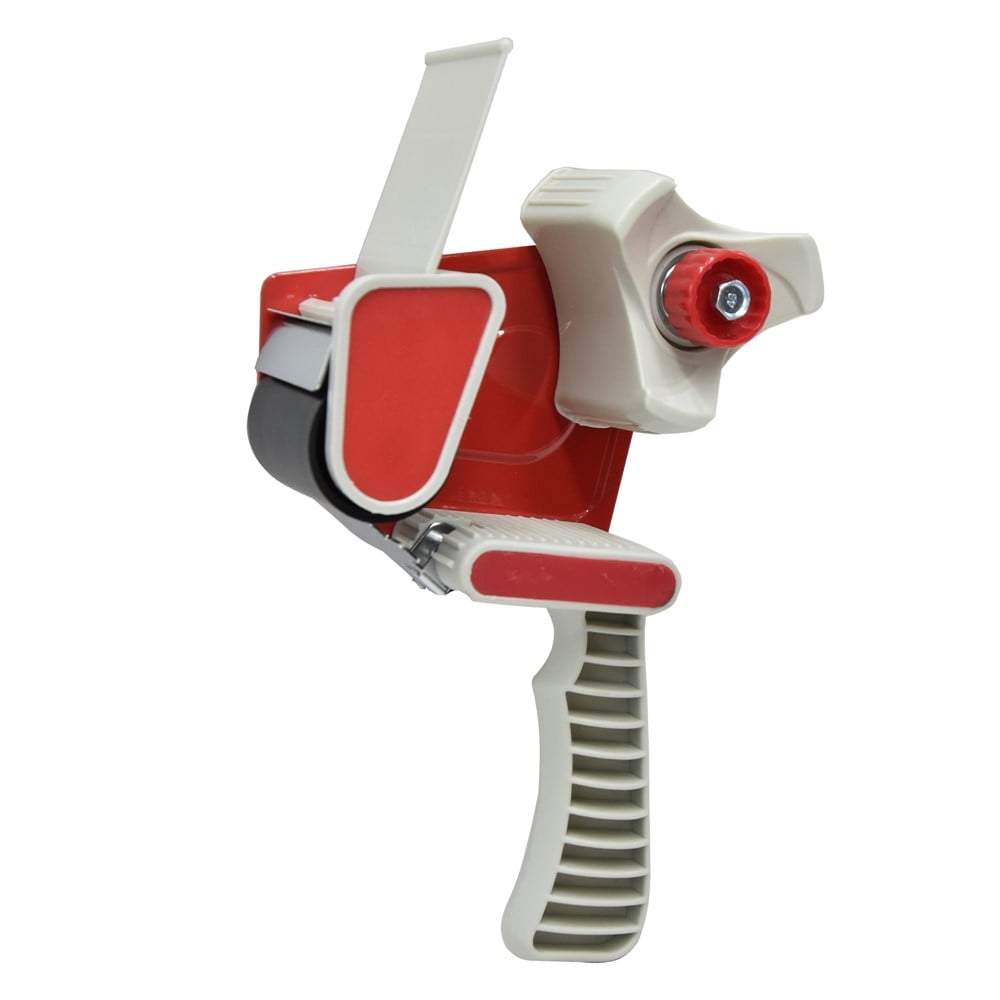Hand mechanism for cardboard adhesive. Used to hold the adhesive when gluing on different surfaces. Built with metal frame, cutting knife cover for more safety, maximum adhesive that can catch 50 mm, length 132 m.