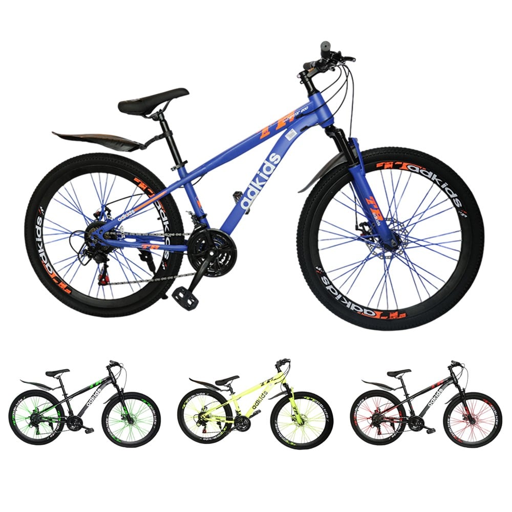 AdKids Bicycle. The perfect model that has everything within a single bicycle model. It has a solid steel structure with a super light weight with 26" tires made of nylon. This means twice as much resistance as normal bicycle tires and greater softness while pedaling. It is equipped with a shock absorber, which helps reduce the level of shock even on the most difficult terrain of use. The double braking system helps to stop the bicycle immediately to prevent possible injuries. The bicycle is equipped with 21 speed levels which are provided thanks to the gears that this bicycle has. The latter has 7 gears in the rear and 3 in the front. Now pedaling on any terrain is no longer impossible, as you can choose your speed level depending on the terrain you are on.