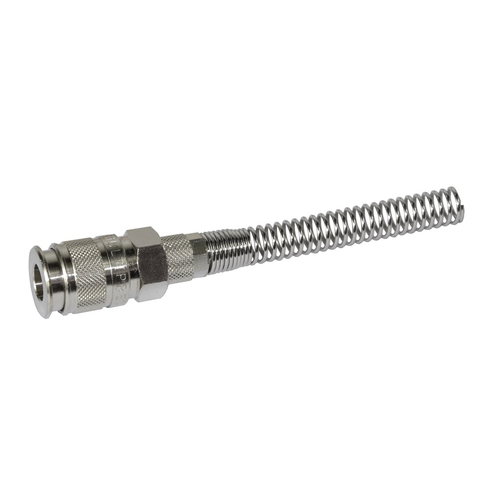 10/8 faucet with protection spring Material: Metallic .This Product line adds professional in the field of mechanics or service. It can be used for air lines in factories or Automotive plant, where the presence of air is imperative. Air fittings manufactured under a care and with great precision to enable satisfactory results. Their paper provides a high stability during the work, as well as a facility in operation during use.