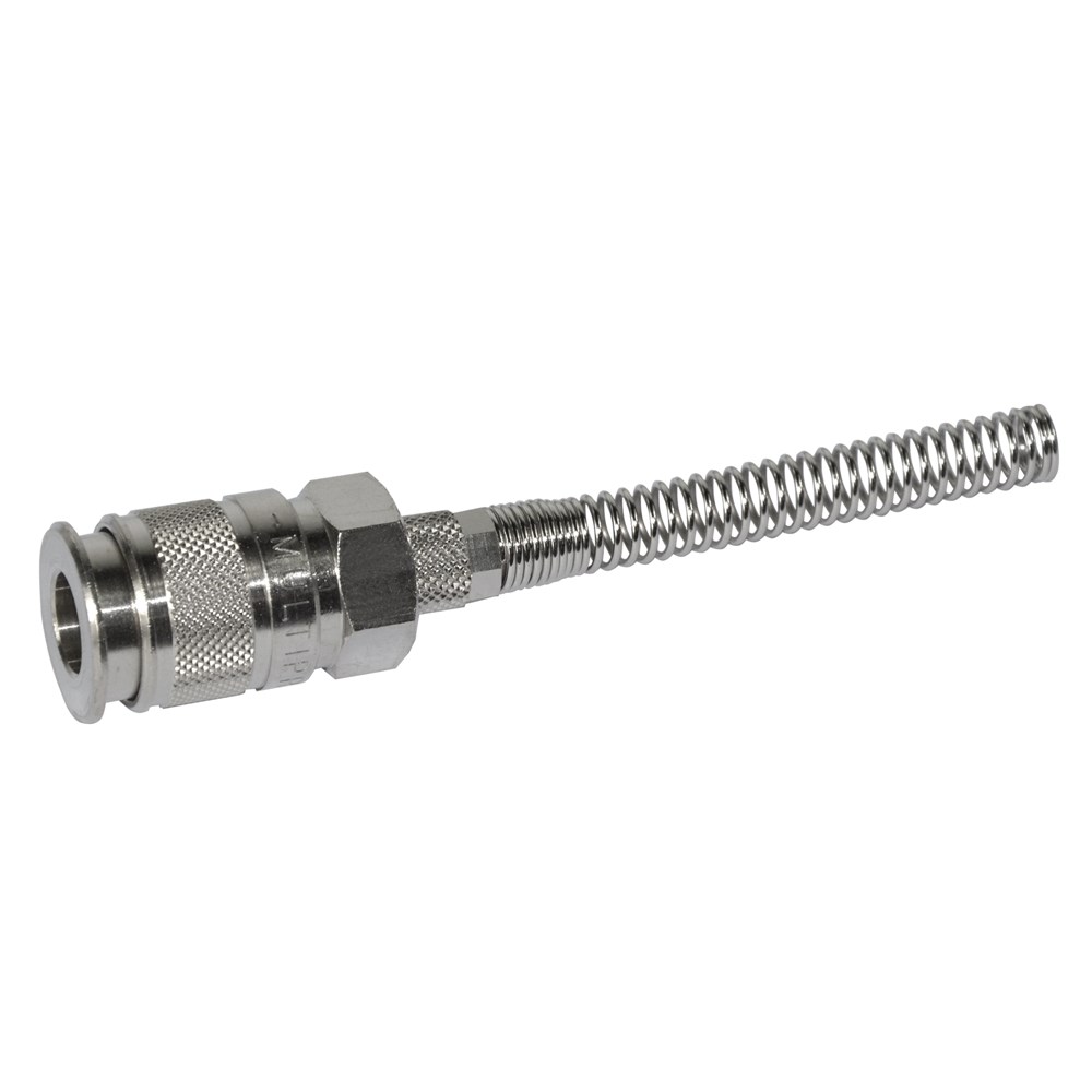 Faucet with protective spring 6/4 Material: Metallic .This Product line adds professional in the field of mechanics or service. It can be used for air lines in factories or Automotive plant, where the presence of air is imperative. Air fittings manufactured under a care and with great precision to enable satisfactory results. Their paper provides a high stability during the work, as well as a facility in operation during use.