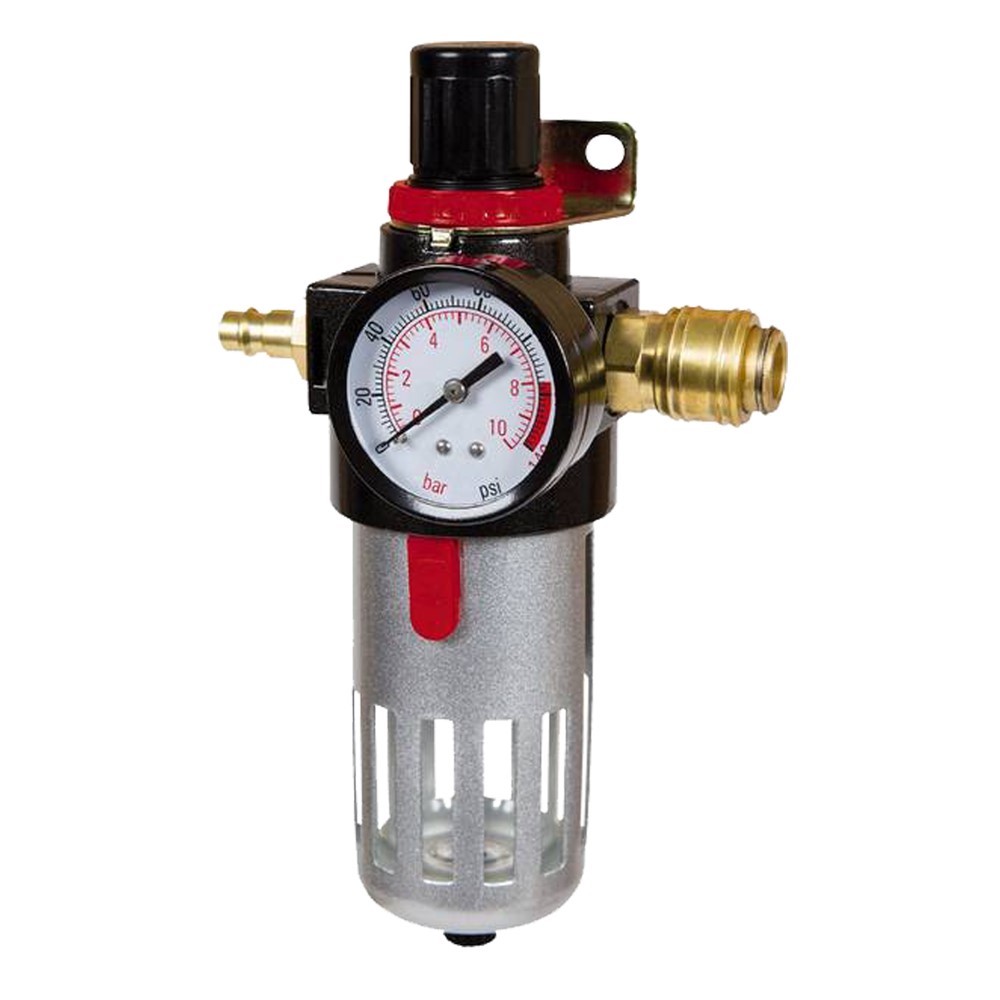 Ideal for outlet use of the air compressor. Provides passage of water microparticles which cause great damage to air tools over time. Microparticles which are created as a result of condensation due to the temperature difference between the inside and the outside of the compressor. With pressure regulator, it serves both as a filter and as a pressure regulator that drives the mechanisms of operation of the air.