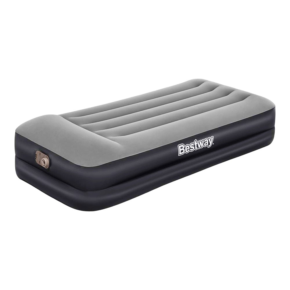 With dimensions of 191 x 97 x 46 cm, the Bestway TriTech Single air mattress offers enough space for one person. Whether for guests, camping or as an everyday bed, this mattress adapts flexibly to your needs. The inner part is made of innovative TriTech material, which is up to 44% more resistant to stretching, 19% more resistant to air pressure and 18% more durable than traditional vinyl. This advanced construction guarantees a special durability and high stability of the mattress. With a maximum weight capacity of 150 kg, the mattress offers reliable support and comfort even during intensive use. The integrated pillow adds comfort and supports the neck and head while sleeping. The frame design surrounding the mattress prevents slipping and improves stability, allowing you to sleep safely and comfortably. The integrated 220-240 V electric pump allows you to fully inflate the mattress in just 3 minutes, saving time and energy. The package also includes a practical storage bag and a repair adhesive, allowing you to easily store the mattress after use and repair it if necessary.