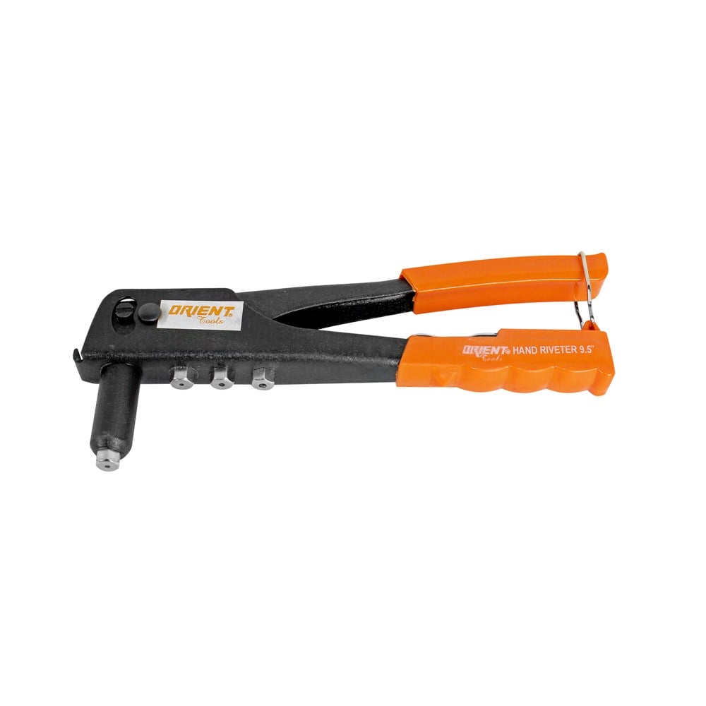 All steel riveter Accepts 2.4, 3.2,4 and 4.8mm aluminium and steel rivets for a wide range of applications 4 nose pieces and wrench store in handle for versatility and convenient storage