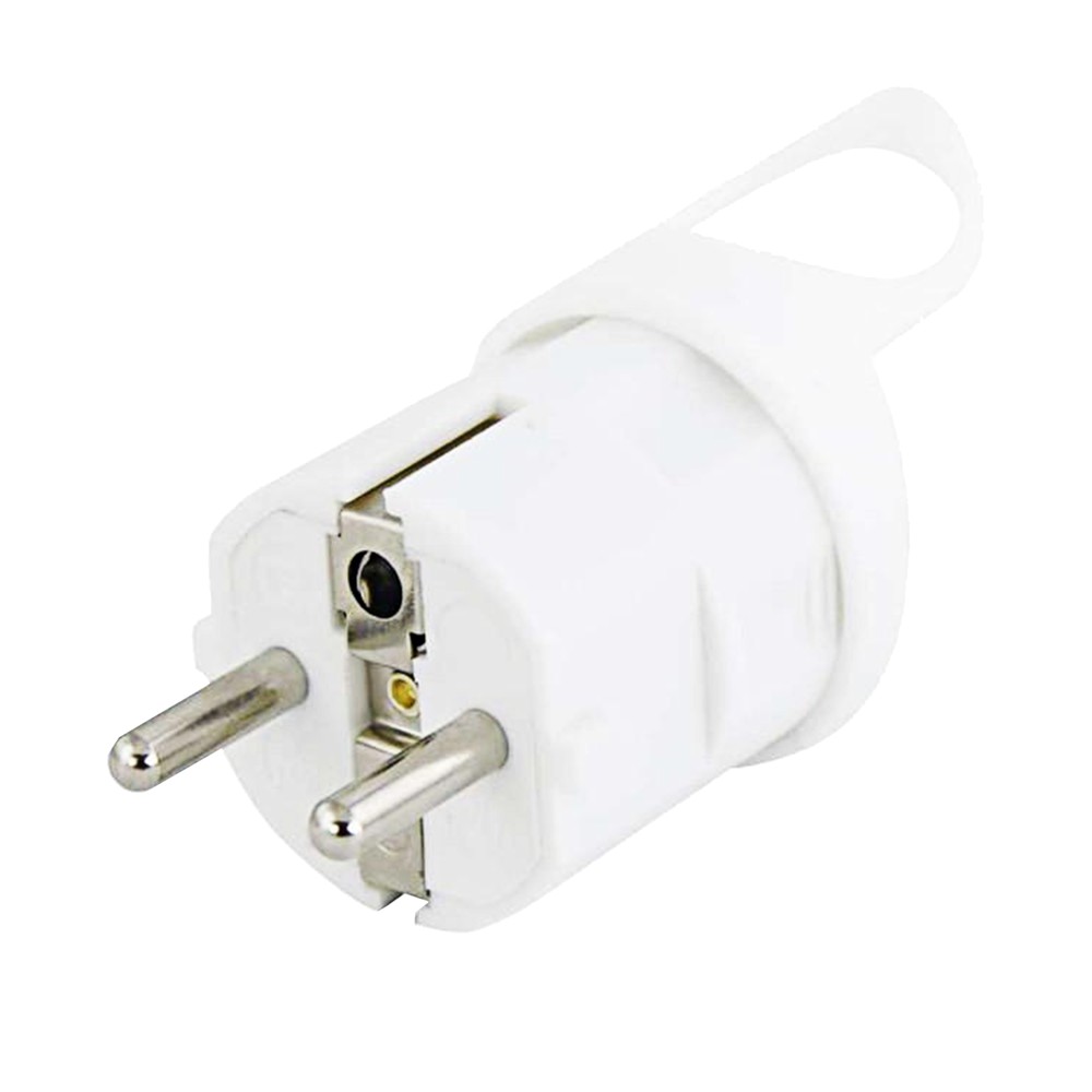 Angle plug for extension cable, 90°, 3680 W, 16 A, 250 V, white. This category of plugs has civil use. The outer rubber material makes it resistant.