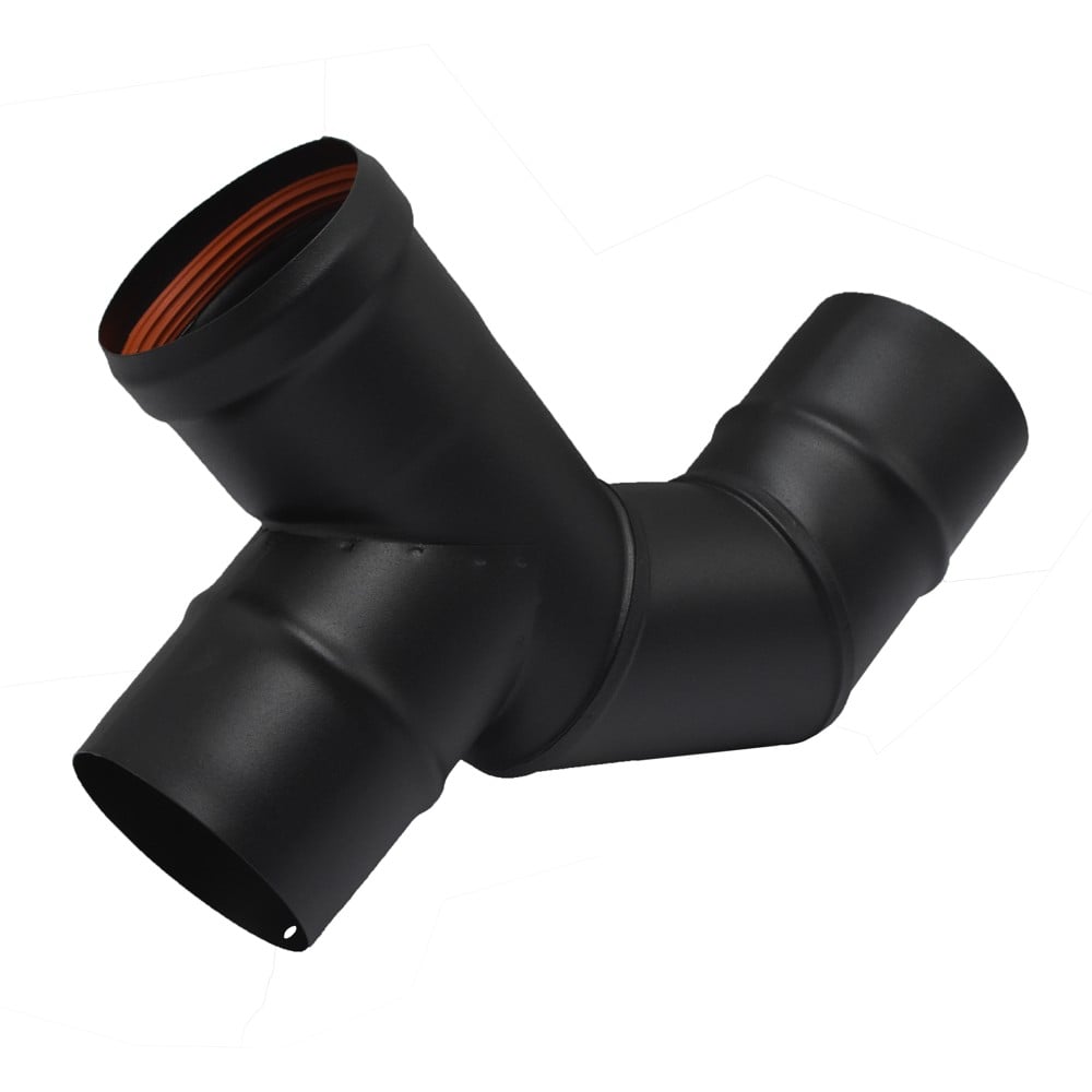 Reinforced and thick steel corner welded with laser technology, coated with porcelain enamel both inside and outside, with a procedure called Term, ensures the preservation of the color, even after several years of use attacked by the acid fumes emitted by the stove. Painted with a 1.6mm thick matte black lacquer. Diameter Ø 80mm equipped with rubber in the end part.