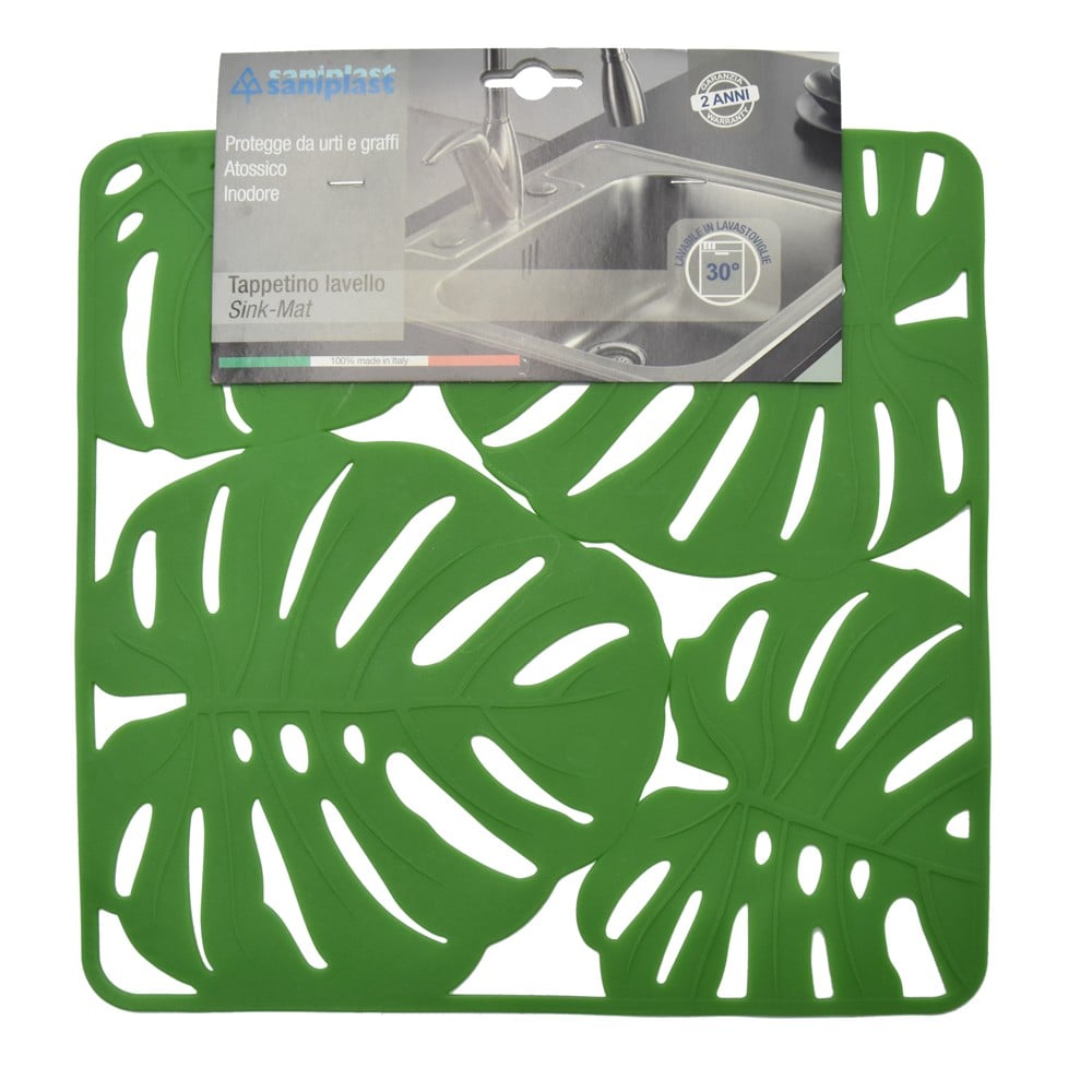 Anti-slip sink mat, Foglie, pvc, green, 32x32 cm