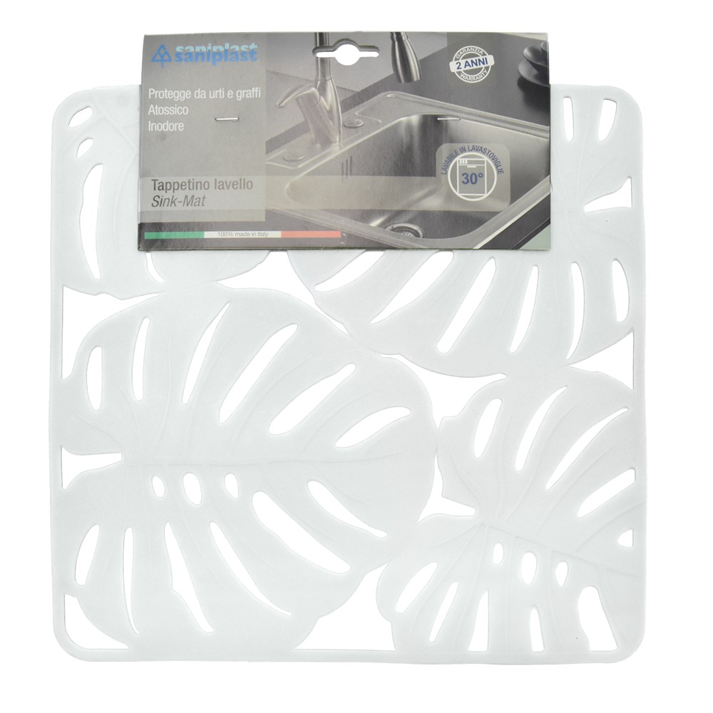 Anti-slip sink mat, Foglie, pvc, white, 32x32 cm
