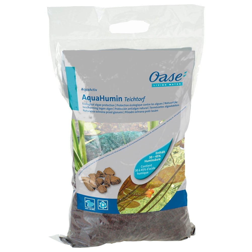 It creates the biological balance and preserves it in a natural way. The special peat has a humic acid content of 30 to 45%. The humic acids lower the pH value and soften the pond water. This inhibits algae growth and clears water turbidity. OASE Aquahumin is free from chemical additives, pathogens and substances that are toxic to plants.