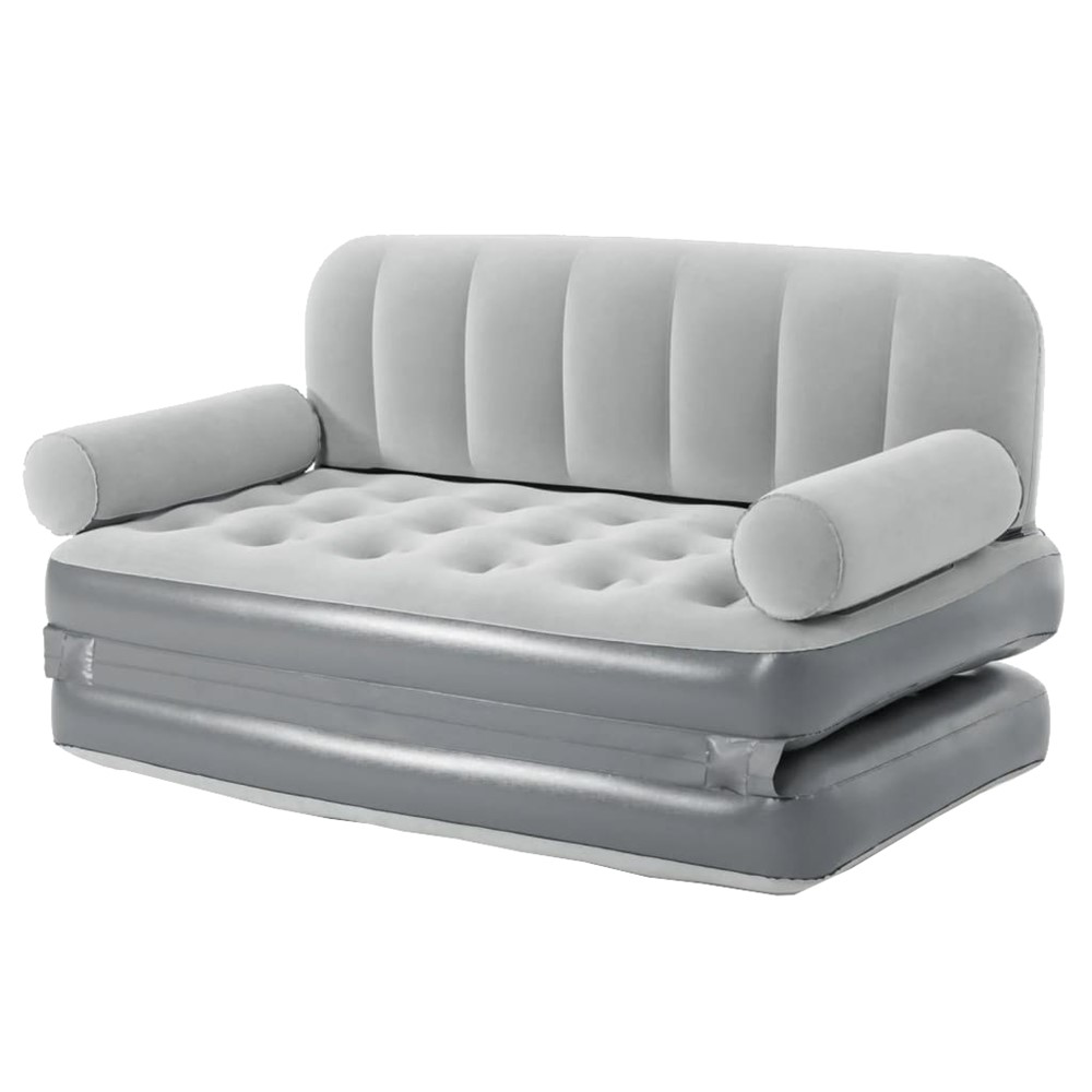 The Bestway® Multi-Max air sofa has been designed with practicality in mind. The cozy sofa can be transformed into an equally comfortable bed in just a few simple steps. It is easy to transport and can be inflated in minutes thanks to the integrated electric pump. When using the Multi-Max as a sofa, comfortable armrests and backrest provide the comfort you need - whether while watching a good movie or playing your favorite video game. When you get tired, the pillows unfold to reveal the bed. The bed measures a proud queen size and offers enough space for 2 people. With flocked surface you can always enjoy the best comfort.
