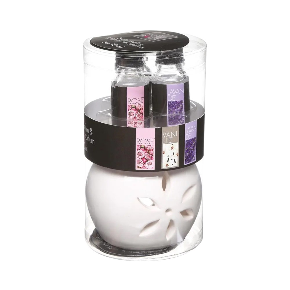Aromatic room set, 3 aromas of flower oil, with burning, glass, assored, 8.5x7.5xH8 cm