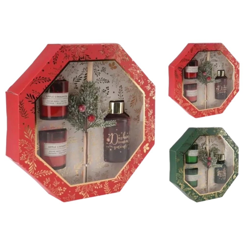 Aromatic set and scented candle, Christmas, 2 candles + 1 aromatic 80 ml