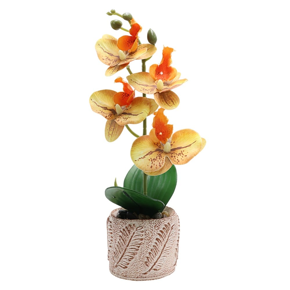This artificial orchid, which comes in a variety of colors, is a unique decorative object that brings elegance and fresh colors to any environment. Made of quality plastic, with carefully crafted details, the orchid offers a natural look and a powerful visual effect, making it suitable for any space, office, or as a special gift for flower lovers. With a height of 28 cm and a diameter of 8 cm, this orchid is ideal for placing on tables, bedside tables, windows or to decorate any empty space. If you want to add an elegant element to your decor, this orchid is the perfect solution. Placed in a pot, it is ready to use and does not require constant maintenance.