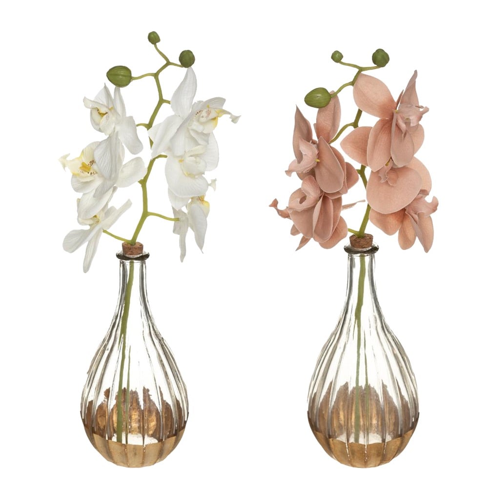Artificial flower, Orkide, in glass pot, plastic, bottle: 10x21 cm; flower: H35 cm