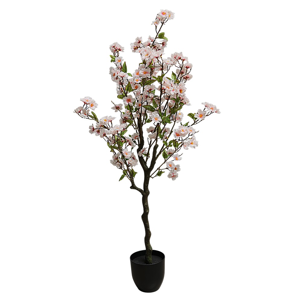 This artificial Cherry Blossom tree brings a delicate and romantic touch to any environment, with its branches filled with light pink flowers that create a soft and relaxing atmosphere. Placed in an elegant black vase and made of high quality plastic, it is a perfect decor to brighten up any corner of the home or office. With a height of 120 cm, this tree is easy to place and requires no maintenance, always maintaining its beauty.