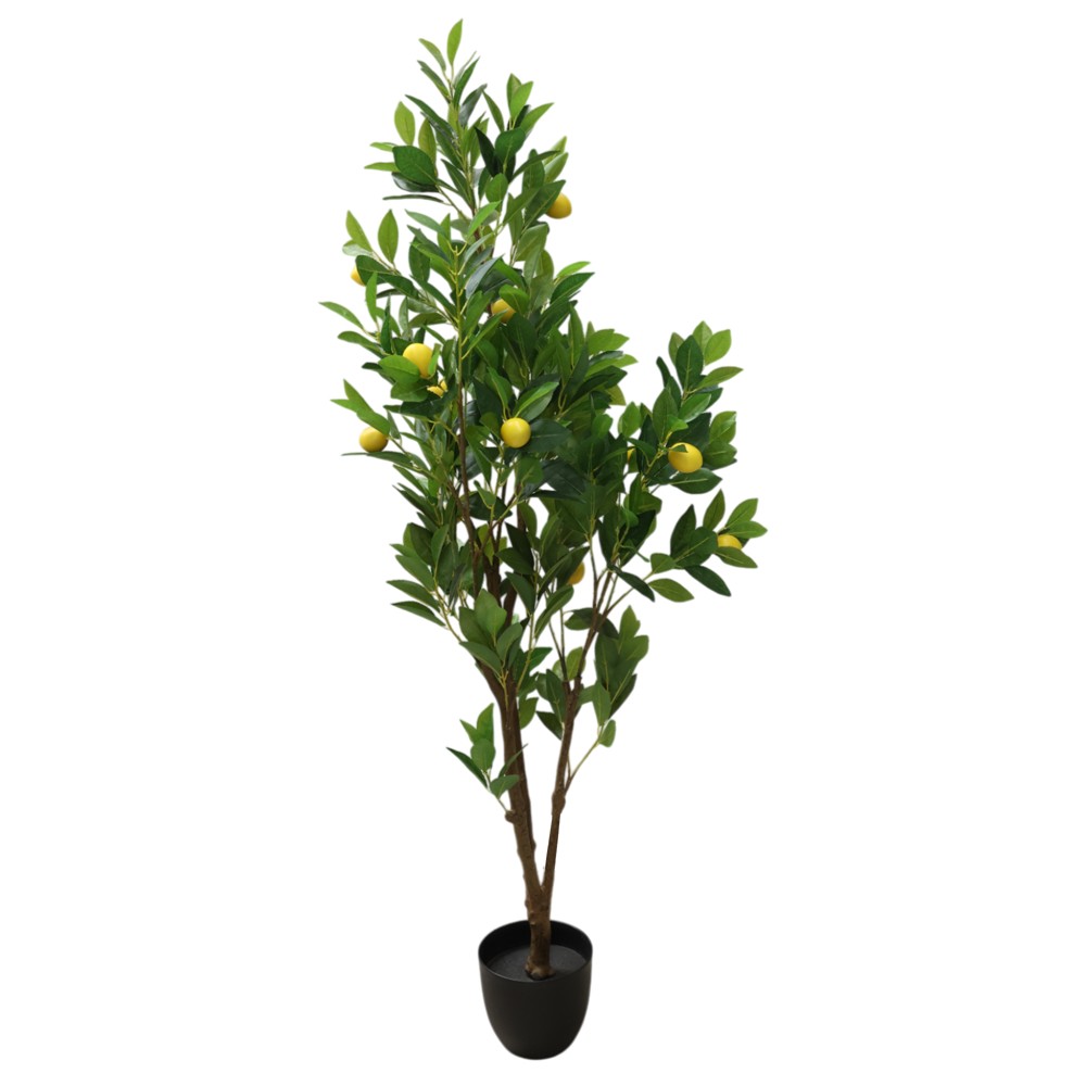 An artificial lemon tree in a plastic pot is a great decoration for your home, office or shop. The product is very similar to a real plant. The tree has a height of 150 centimeters, making it a suitable element for decorating various environments in the home, office, or other premises.