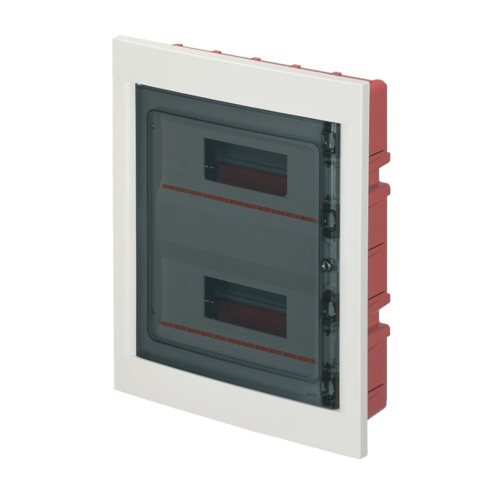 In-wall automat box, IP40, 24M, white. 24 modular in-wall automat boxes are widely used in civil and industrial environments. In addition to the functional aspect (isolation and grouping), the possibility is created for the specialist or family user to intervene as needed in the electrical network. The box is equipped with a transparent cover creating the possibility of monitoring and has an elegant design.