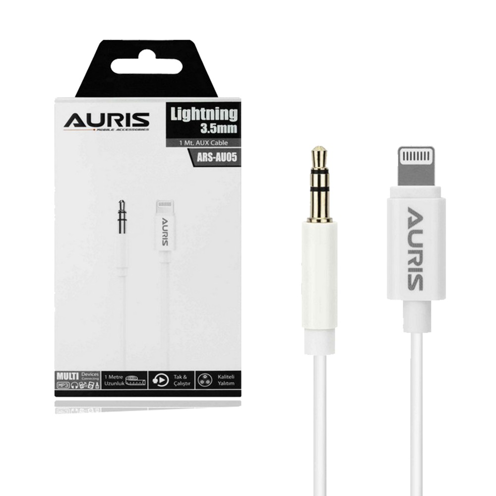 AUX plug, Auris, AU05, AUX - Lightning, 3.5mm, 100 cm, white