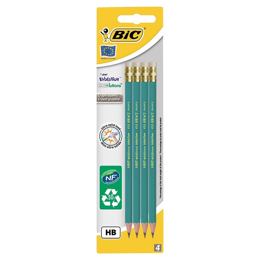 This graphite pencil with rubber is 75 % made from recycled material.It is wood-free pencil in synthetic resin material: no splinter in case of breaking, resists chewing.It is a hexagonal pencil and is easy to handle.