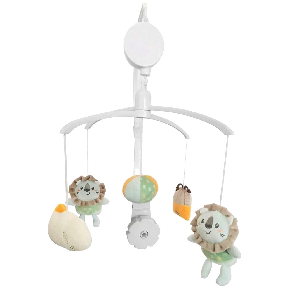 Add fun and tranquility to your baby's crib with the Musical Mobile Jungle King, a relaxing carousel that combines soft melodies with visual stimulation for your baby. Equipped with soft, colorful toys that rotate easily to attract baby's attention and stimulate them visually. Just turn the key mechanism to release a soft lullaby, helping baby calm down and fall asleep. No batteries required. Made from safe and quality materials, certified according to EN 71 standard, suitable for babies 0+ months. Standard size makes it fit in any baby bed.