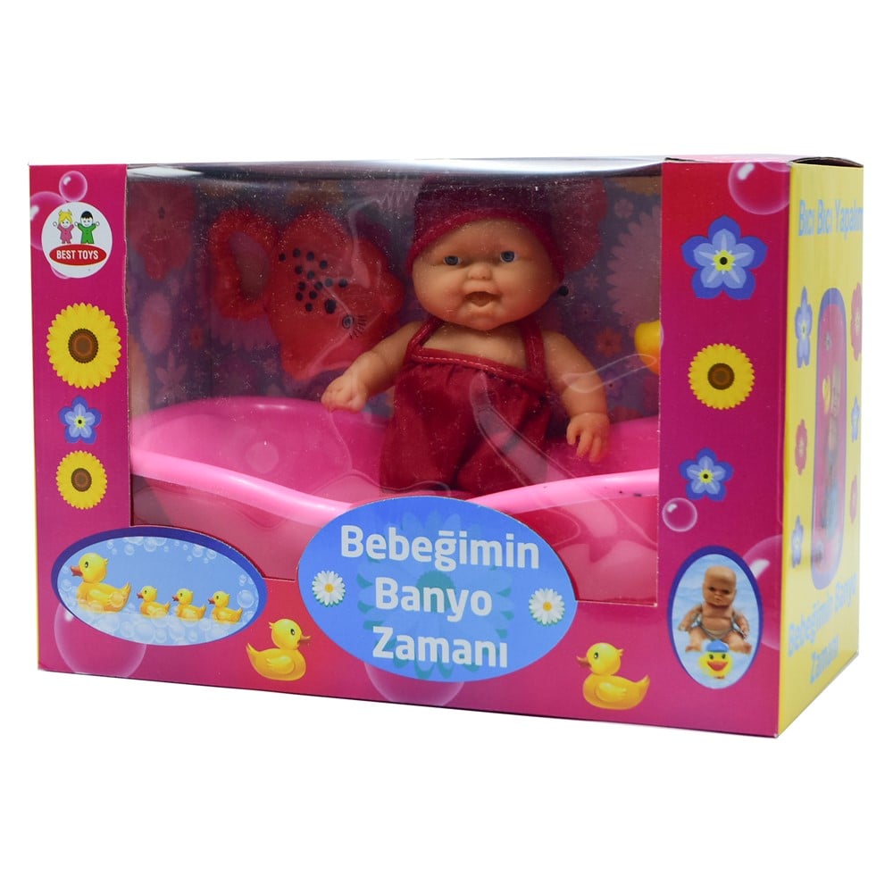 Toy set for kids, which includes a bathtub, 2 toy ducks, a rattle toy and a baby doll, made of plastic material. This set helps to develop the imagination in children, it stimulates the development of motor skills and helps to develop learning skills and perceptual skills, through role play. The constituent material and paint have no content that can be toxic or harmful for children and the product is certified for safety in use. This product is suitable for use by children over 3 years old.