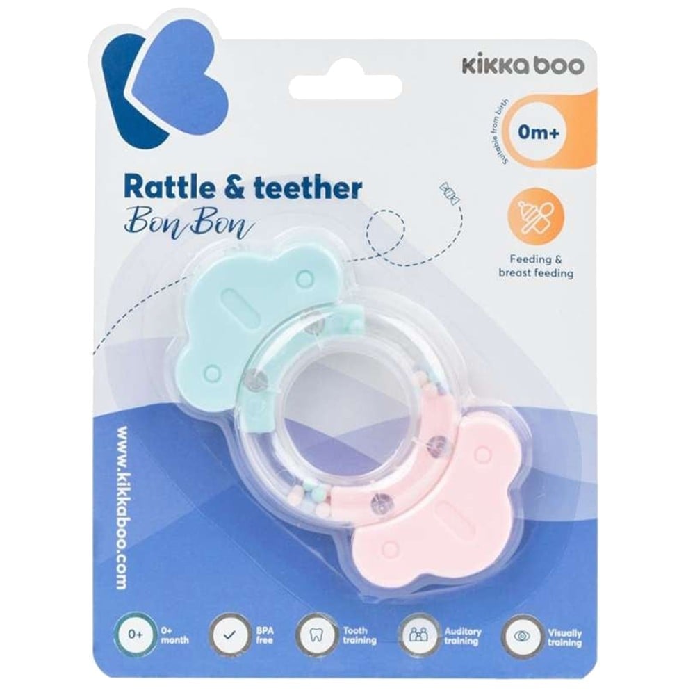 Rattle & Teether bonbon is the ideal companion for your baby, providing comfort during teething and stimulating their senses. The colorful design and soft sounds make it an attractive toy for little ones from the first day of birth. The soft rattling sounds and bright colors help develop the senses of hearing and sight. Equipped with two soft silicone rattles that soothe gums during teething. Quality BPA-free materials, safe for baby's touch and play. The ergonomic design makes it easy to hold and use, offering comfort and fun at the same time.