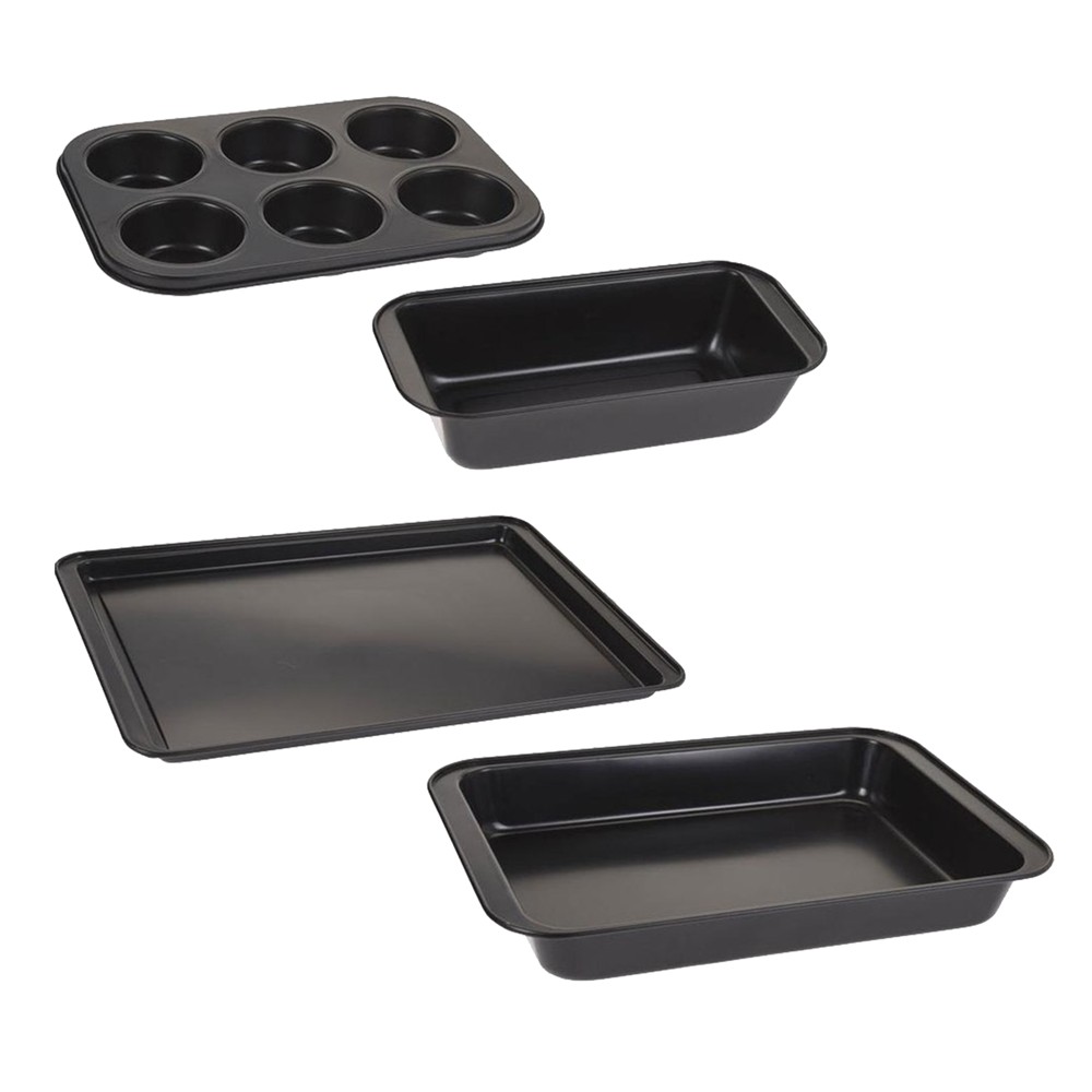 This set of 4 baking pans (PK4) is made from durable metal, ensuring even heat distribution for perfectly baked results every time. The sleek black color adds a modern and professional touch to your kitchen. Designed for practical and long-lasting use, these pans are an essential tool for both home cooks and professional bakers.