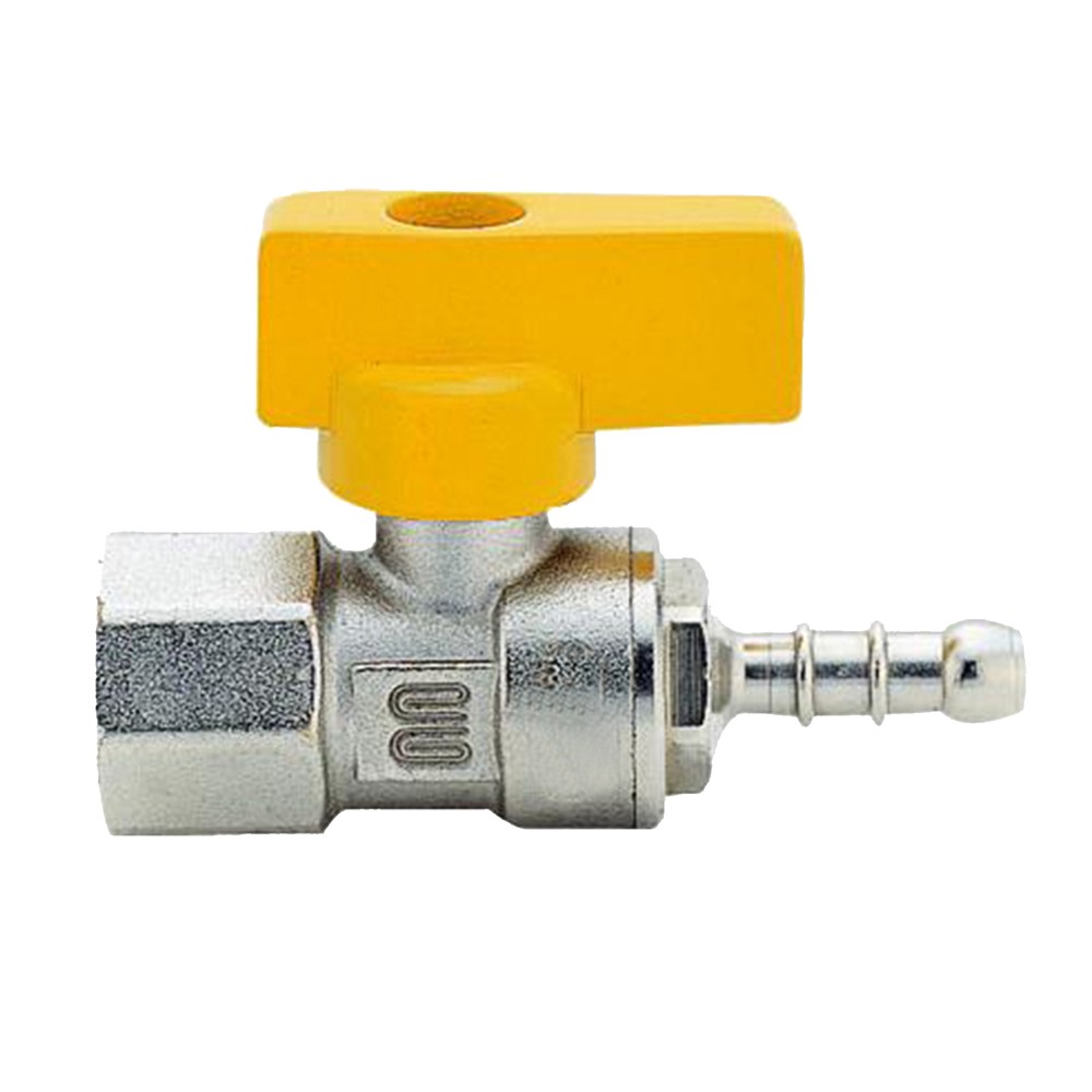 Straight gate valve with sphere and yellow aluminum handle serves for opening and closing gas (LPG). With its two outlets 3/8'' - F'' and the other tap outlet for connecting the rubber tube, it is a necessary and very practical product for the operation of gas systems.