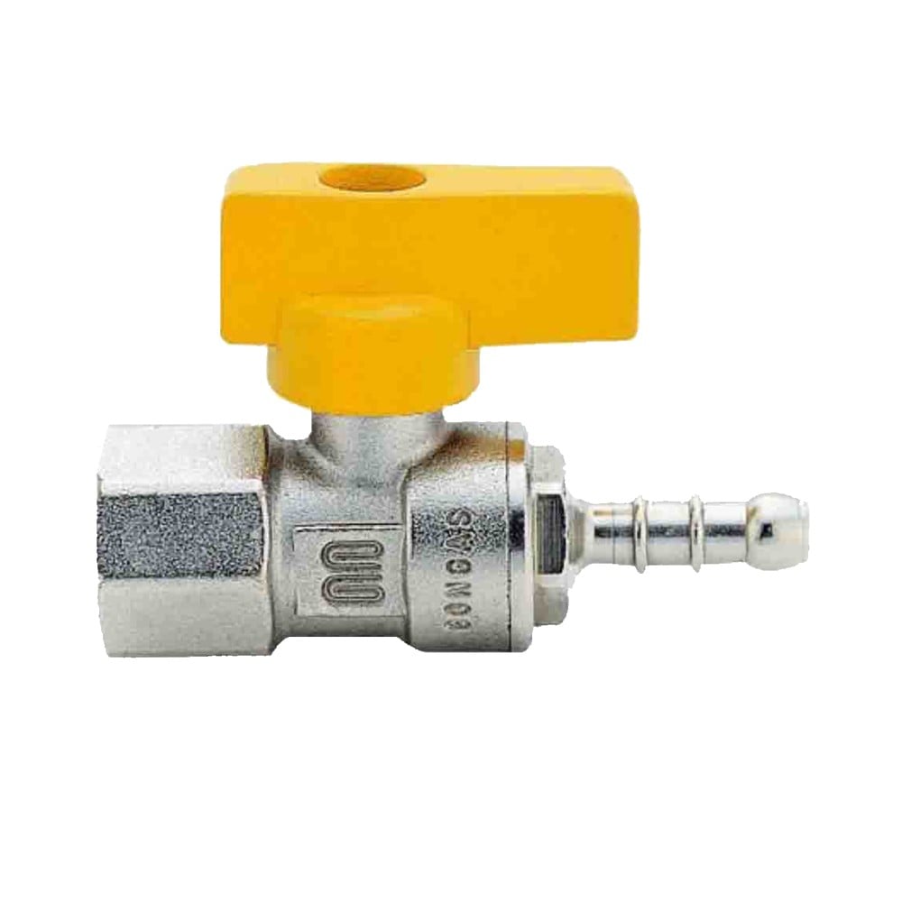 Straight gate valve with sphere and yellow aluminum handle serves for opening and closing gas (LPG). With its two outlets 1/2'' - M'' and the other tap outlet for connecting the rubber tube, it is a necessary and very practical product for the operation of gas systems.