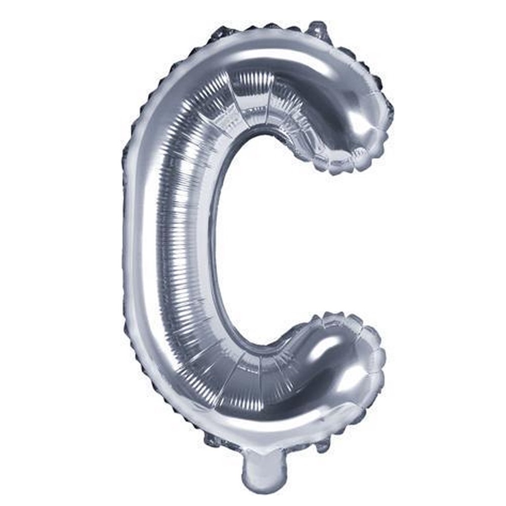 Balloon in the shape of the letter "C", made of nylon material and coated with refined aluminum, in silver color. This product is suitable for creating various decorations for parties and events.