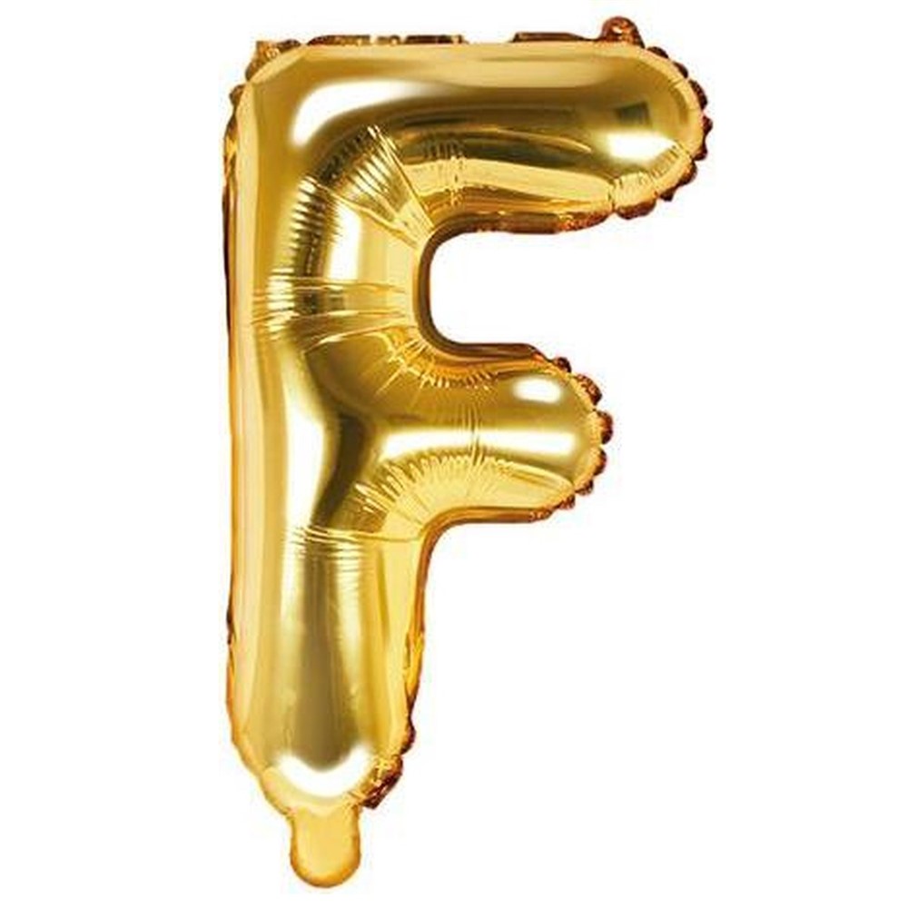 Balloon in the shape of "F" letter, Party Deco, nylon and refined aluminum, 35 cm, gold, 1 piece