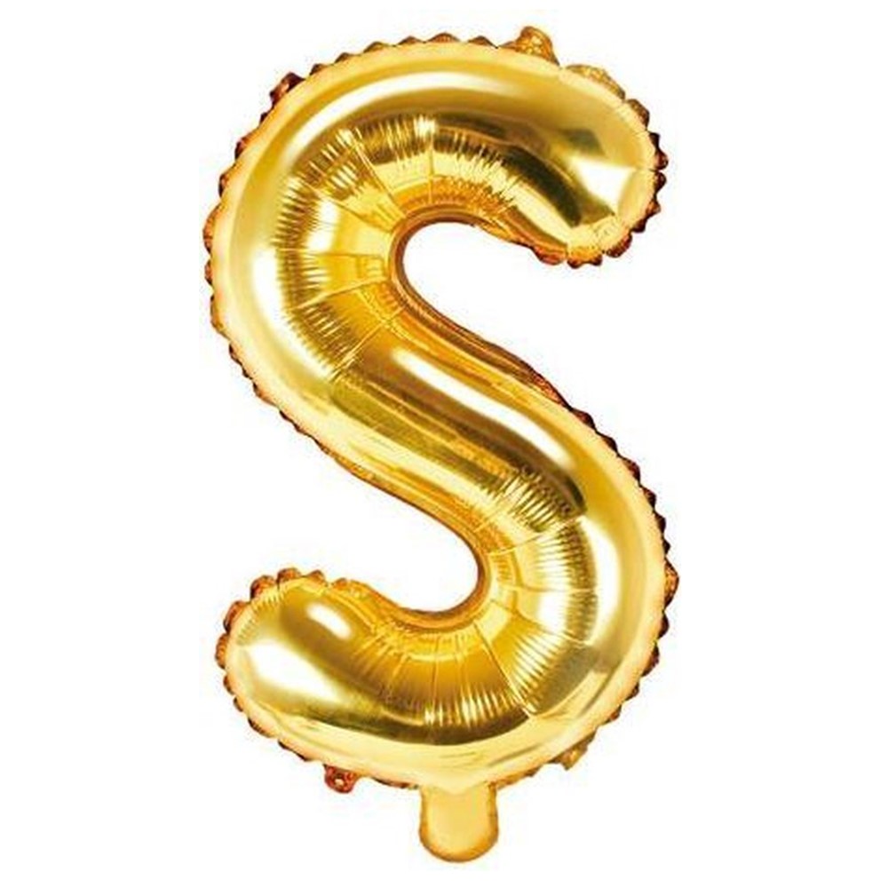 Balloon in the shape of "S" letter, Party Deco, nylon and refined aluminum, 35 cm, gold, 1 piece