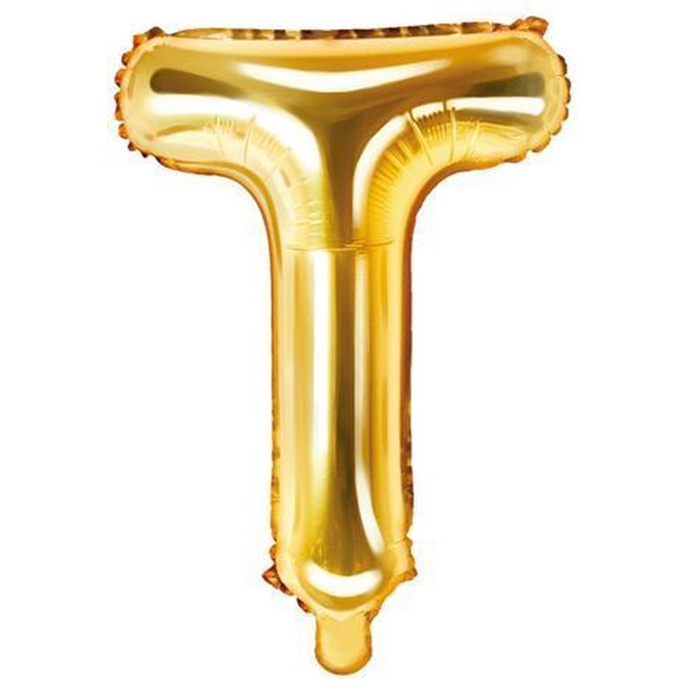 Balloon in the shape of the letter "T", made of nylon material and coated with refined aluminum, in golden color. This product is suitable for creating various decorations for parties and events.