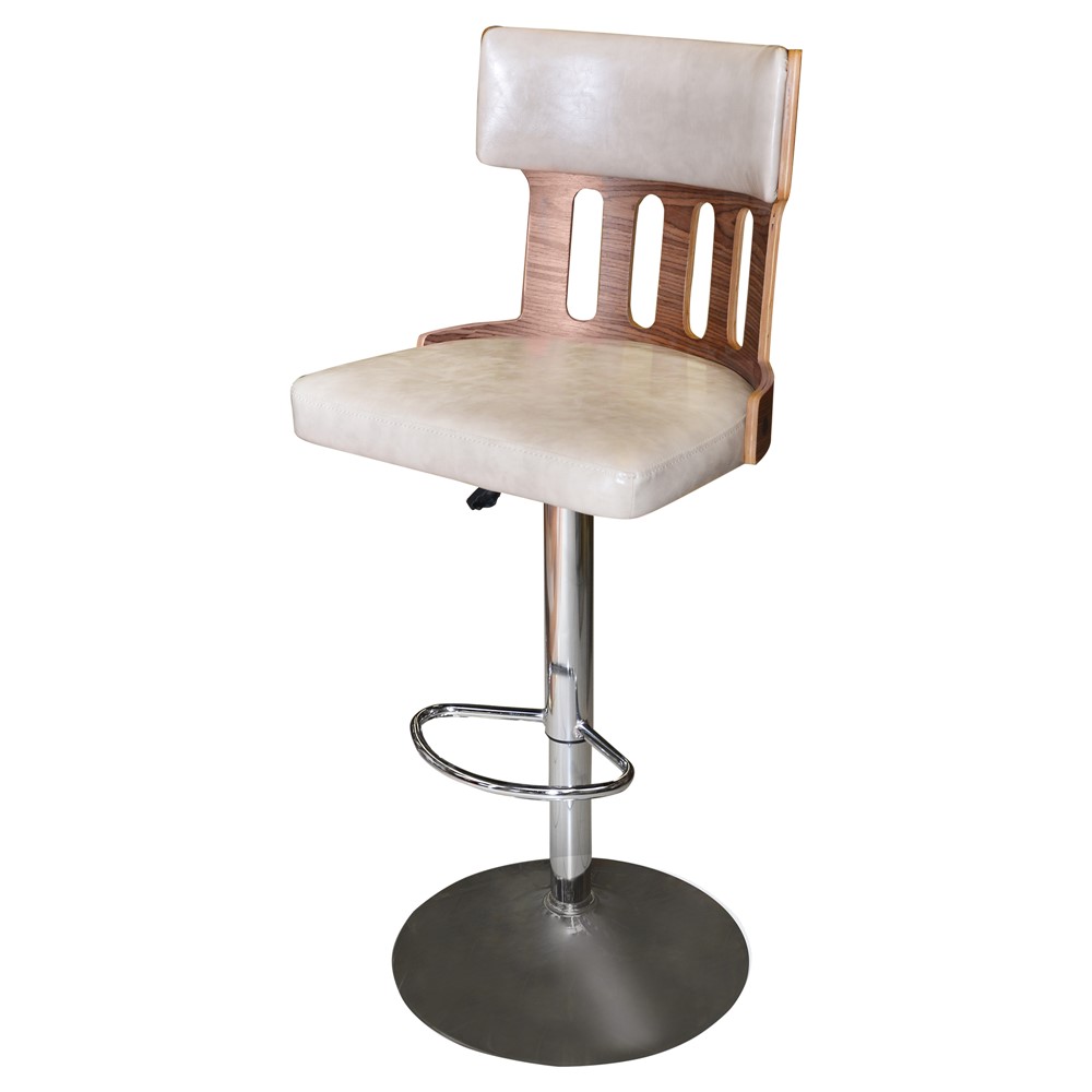 Bar chair, wooden structure (walnut), metallic base (Ø45 cm), PU covering, shiny beige, 50x48xH101 cm