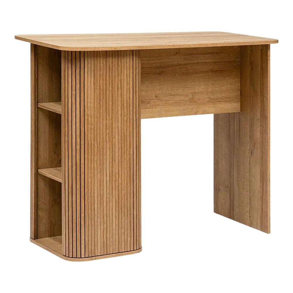 The Colva table is the ideal addition to your space. Crafted with a smooth rounded top and a strong natural wood effect, it features a striking paneled design with thin, straight lines across the base. Its wide top offers plenty of space for your dinner, while its central leg, synonymous with durability, gives your space an elegant and contemporary look. There are 2 shelves that you can store whatever you want or put different decorations.