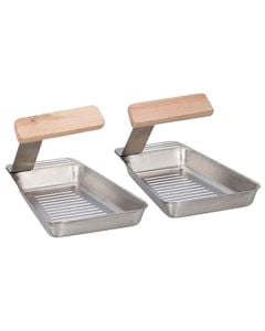 Ideal grill pan for roasting vegetables, meat, seafood and also ideal for frying eggs and roasting chestnuts. Also with stainless steel adhesive and 2 gloves.