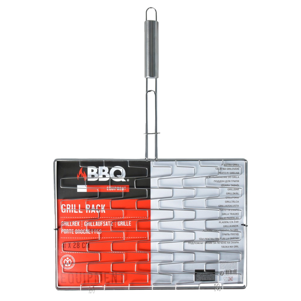 The barbecue rack, made of metal and with dimensions of 41x28 cm, is suitable for use in grilling activities in nature or in gardens. With its durable and functional design, it offers a sufficient surface for cooking meat, fish, or vegetables efficiently and deliciously.