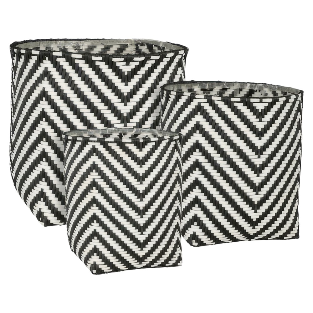 You're reviewing:Basket for flowers, Merlijn, set 3 pieces, plastic, white/black, Ø27xH30 cm; Ø30xH32 cm; Ø34xH35 cm