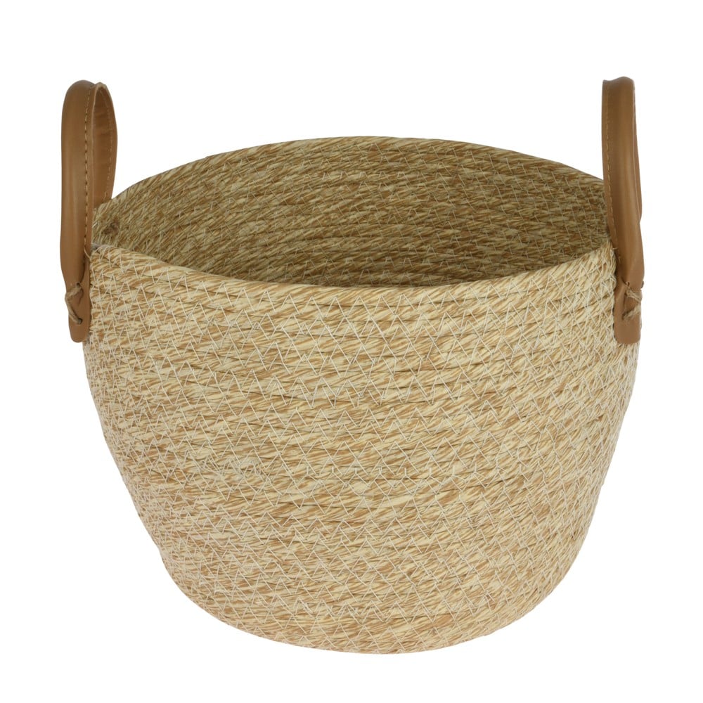 Storage basket with vegan leather handle. Perfect for storage while also being a nice decoration detail. Available in three different sizes. The basket is perfect for storage, and at the same time it works well as a nice decoration detail. Feel free to place it in the bathroom and store make-up or guest towels